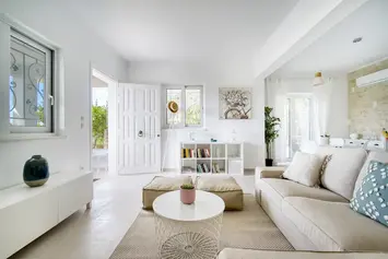 This lovely house is ideal for groups of friends or families who want to enjoy peaceful holidays and explore the most beautiful sandy beaches and crystal waters of Attica! It is located on a small hill with a nice sea-view and only a 8-minute walk from the sandy beach Mayro Lithari.